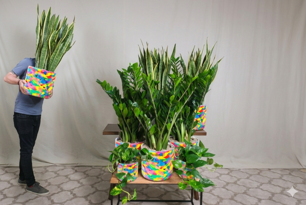 FloraWork is gebouwd op circulaire ontwerpprincipes. Onze potten verminderen plastic afval, maken gebruik van gerecyclede materialen en zijn gemaakt om jarenlang mee te gaan.